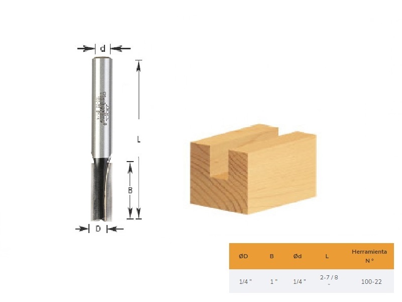 Fresa Recta 1/4" Eje 1/4" 2 Filos Timberline