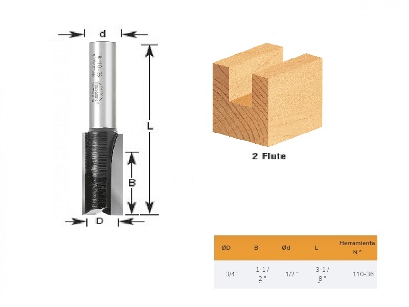 Fresa Recta 3/4″ Eje 1/2″ 2 Filos Timberline